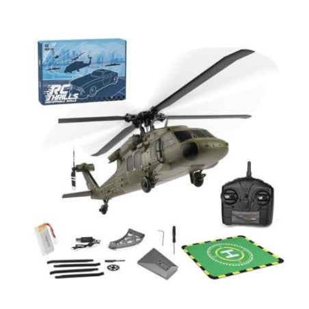 Highly Realistic UH-60L BK Hawk Scale Model: Designed as a true-to-scale restoration of the UH-60L, this flybarless helicopter features a finely detailed exterior and a four-blade rotor system for high simulation accuracy.